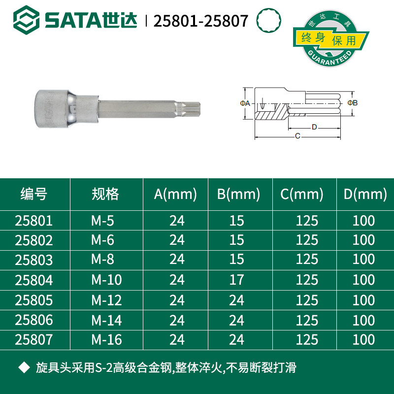 世达12.5mm系列100mm长12角旋具套筒加长批头气动风炮扳手工具