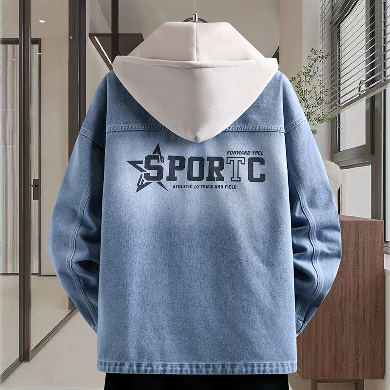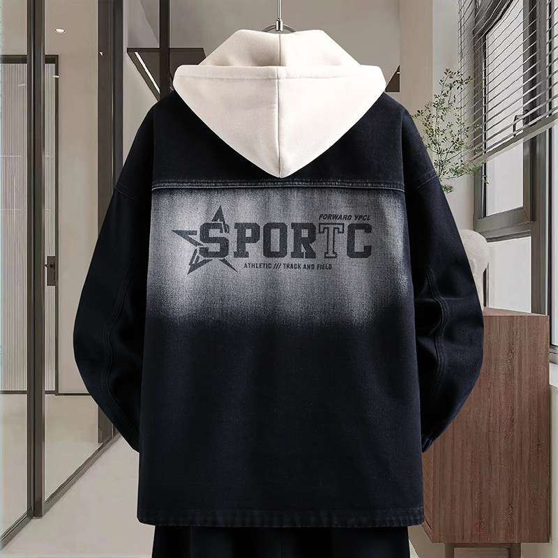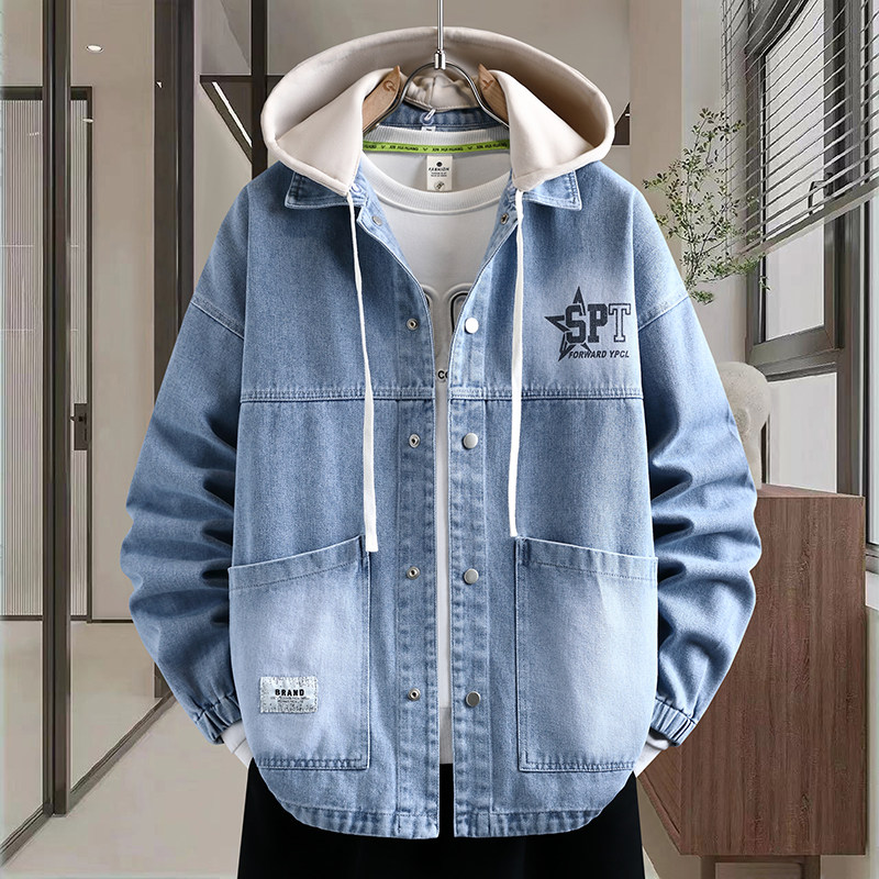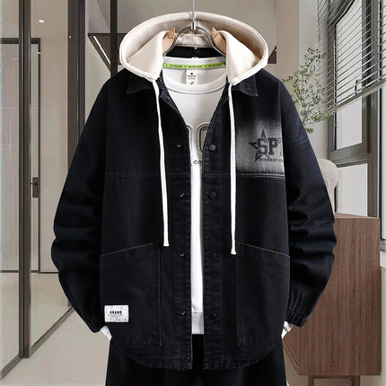 2026青少年穿搭新款高品质可脱卸帽牛仔外套潮流痞帅印花百搭夹克