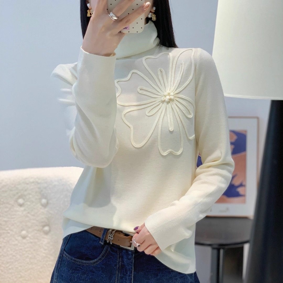 2025秋冬新款洋气好看别致设计感超细羊毛针织衫堆堆领女人味上衣