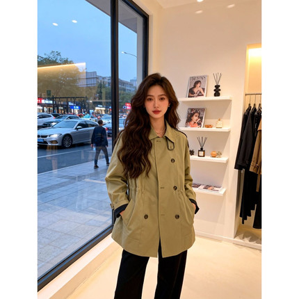 小个子短款收腰风衣女2025新款秋装翻领夹克宽松工装外套QD82190