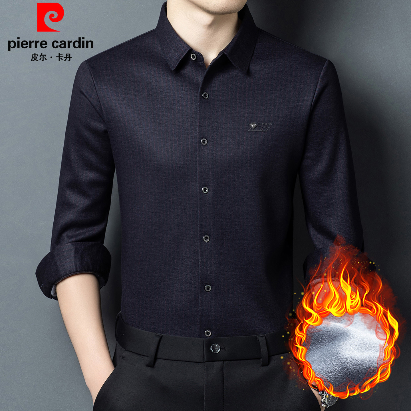 皮尔卡丹羊毛免烫一体绒长袖衬衫