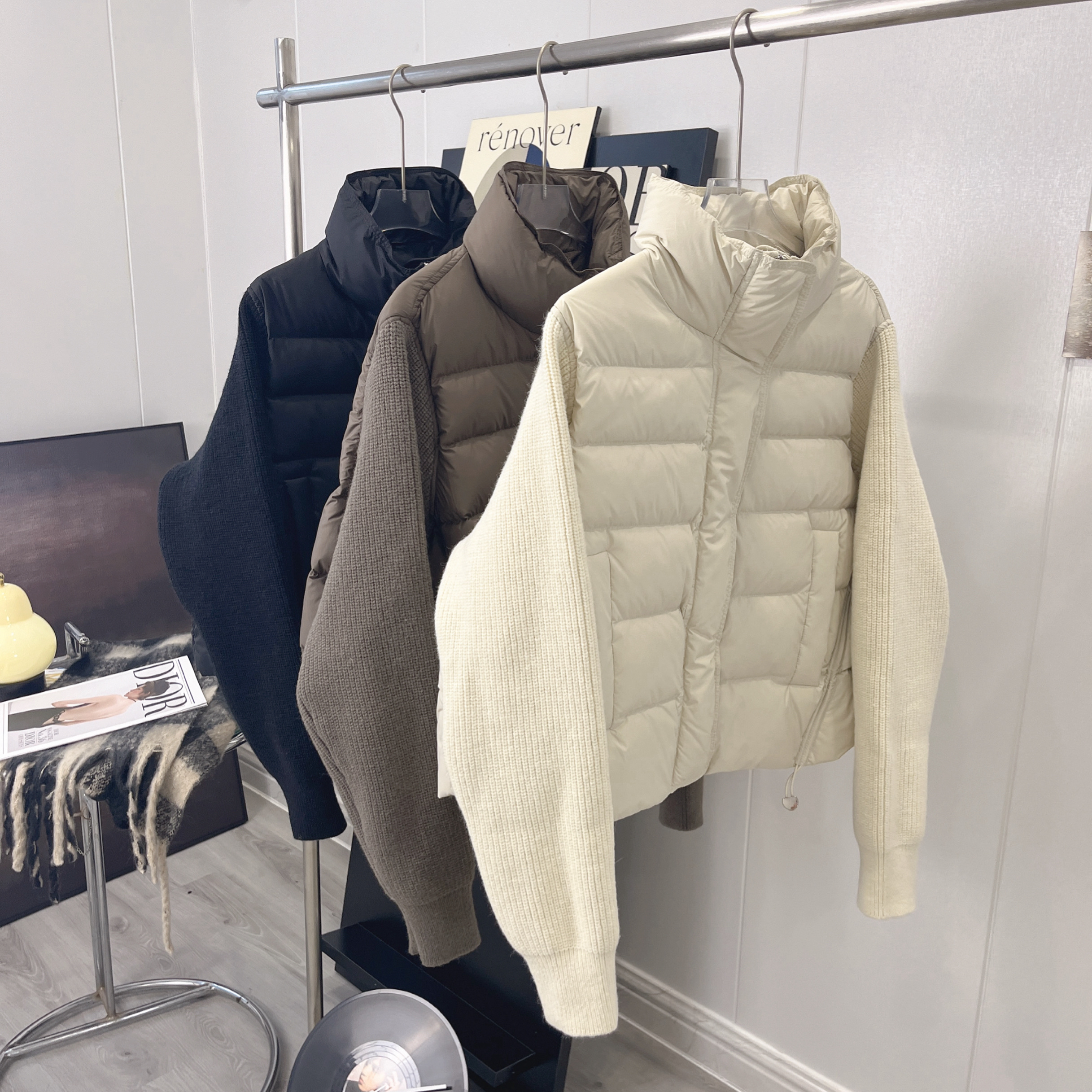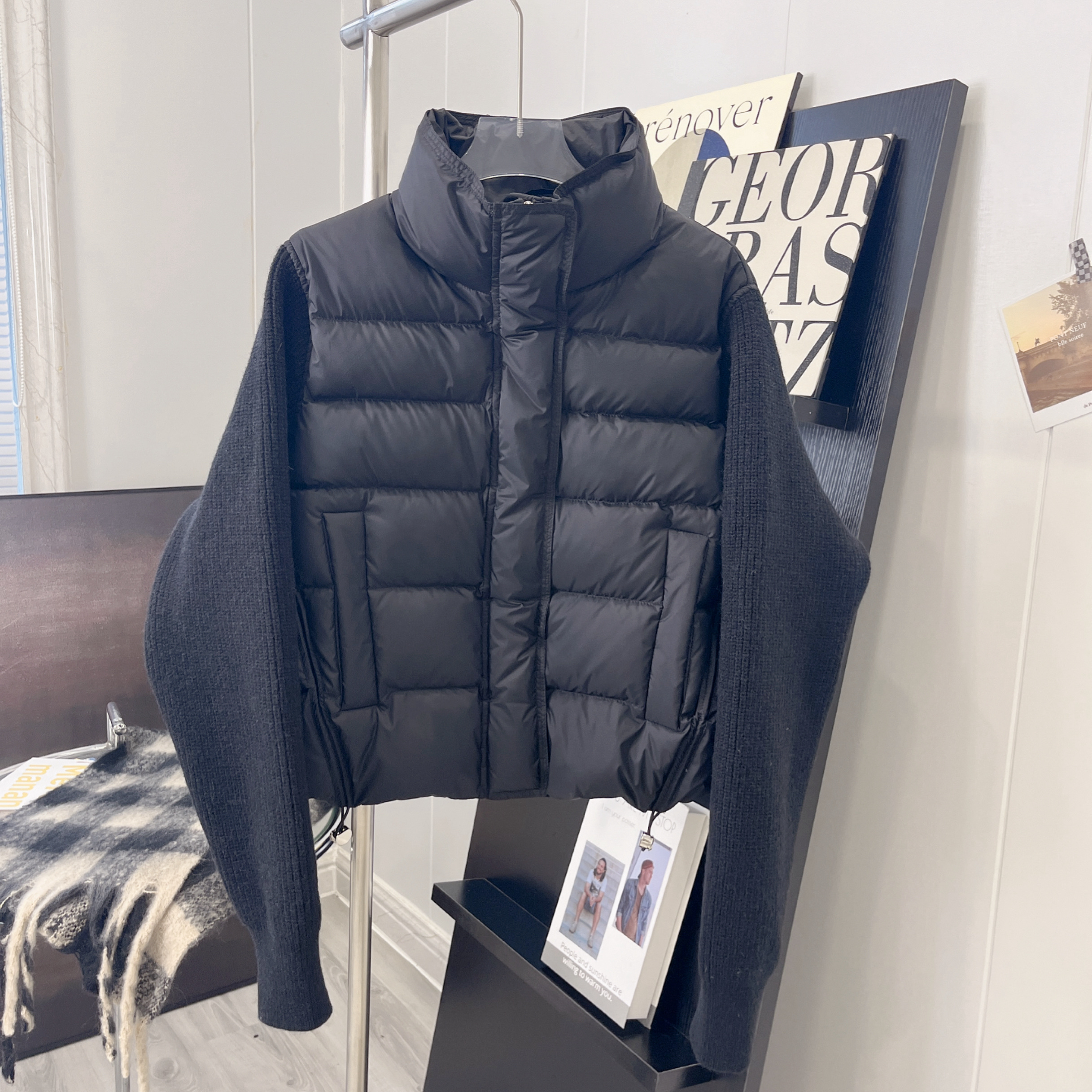 2025秋冬新款韩版90白鸭绒针织拼接短款立领羽绒服女显瘦高端外套