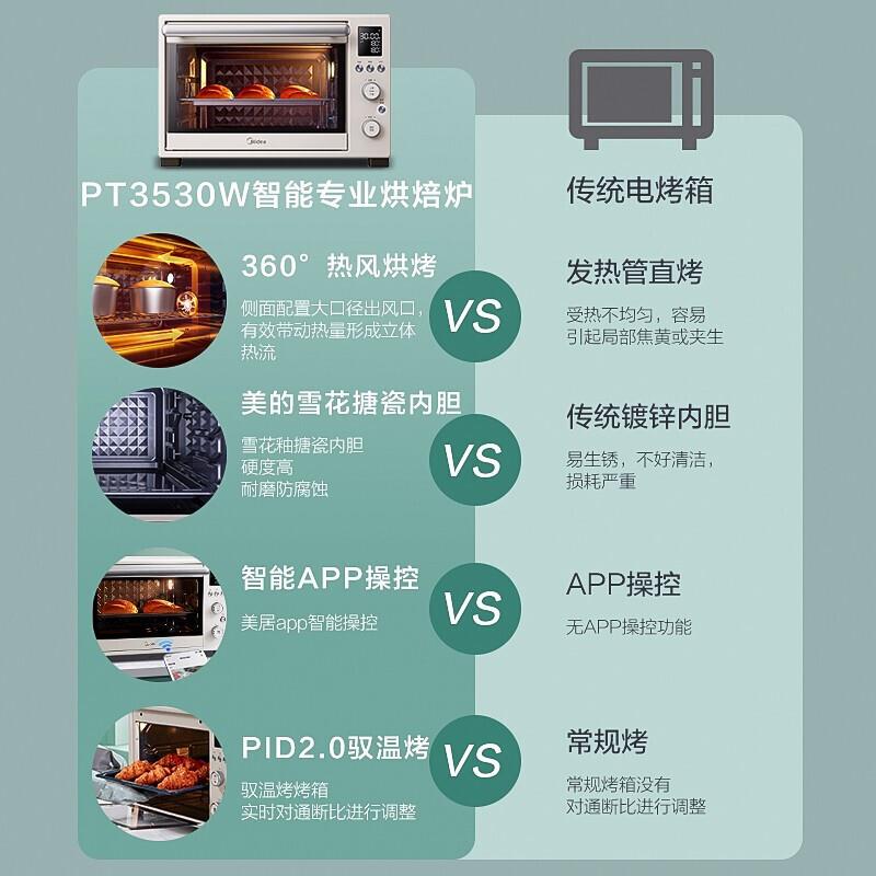 Midea/美的 PT3530W电烤箱热风循环搪瓷台式小型家用蛋糕全自动智