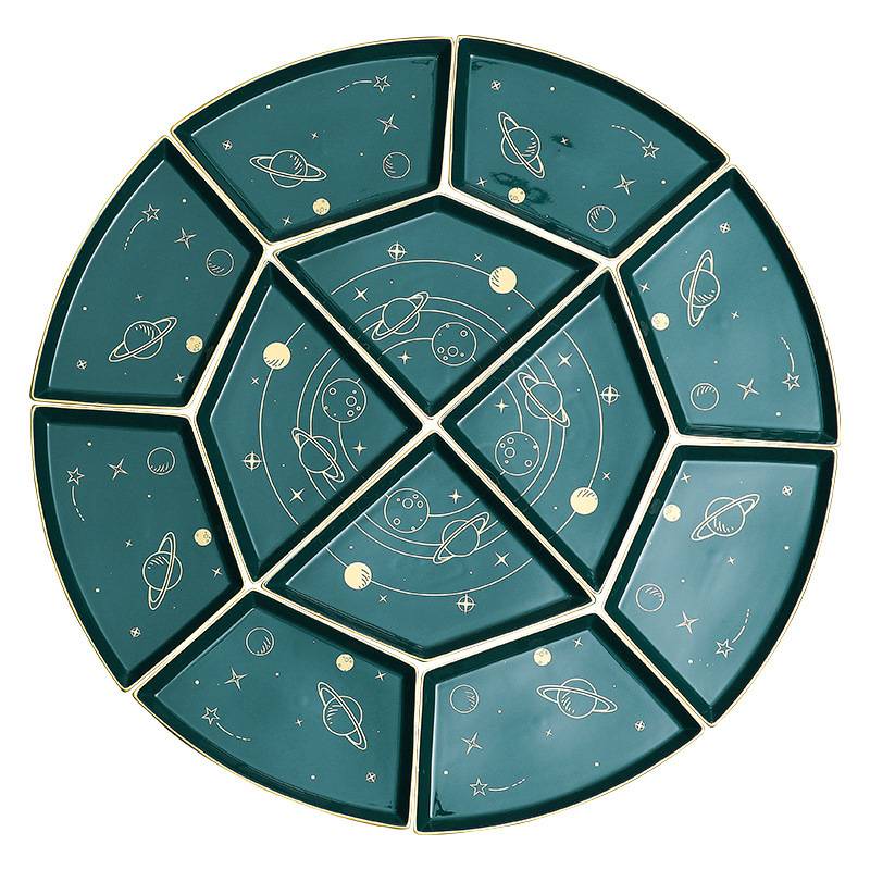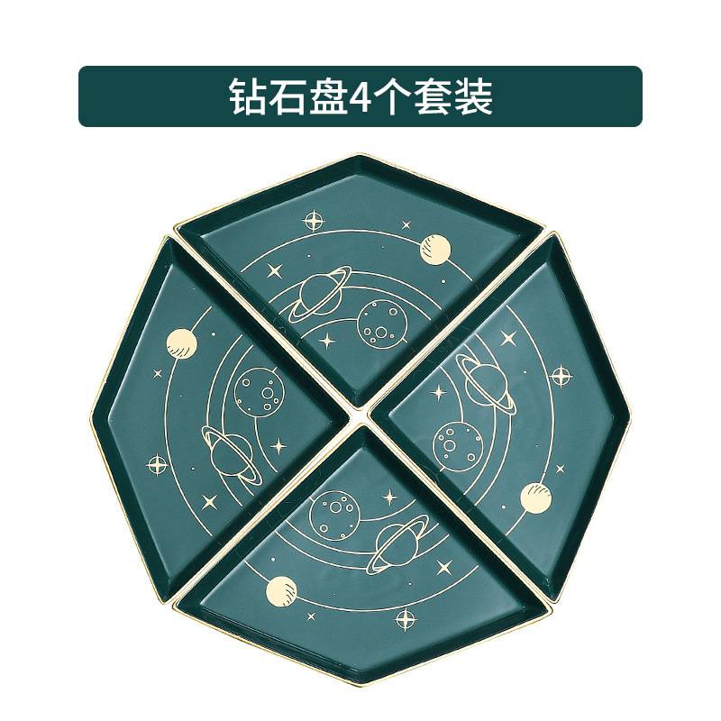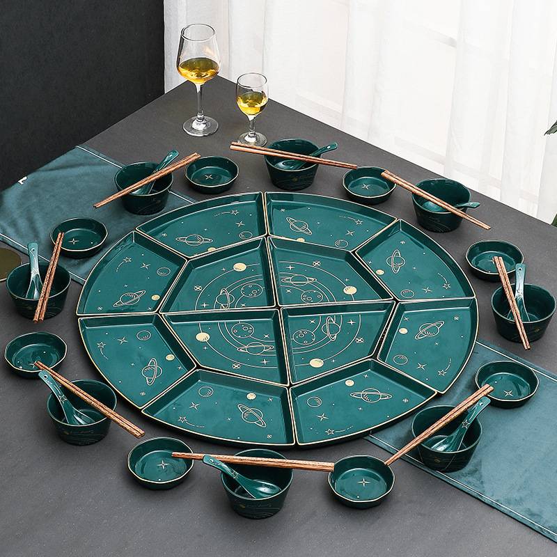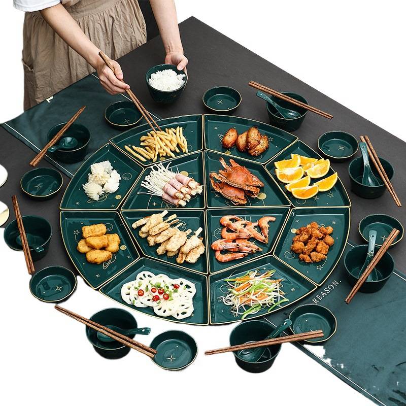 轻奢祖母绿拼盘组合家用聚餐团圆摆盘餐具创意陶瓷盘子碗碟套装