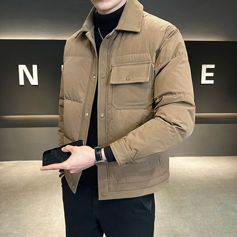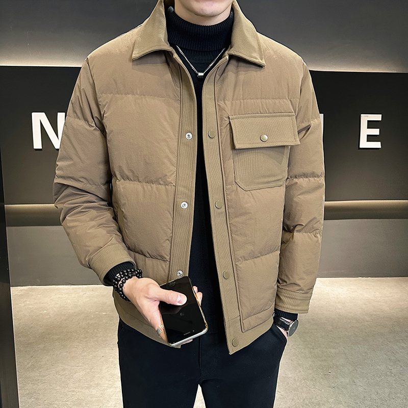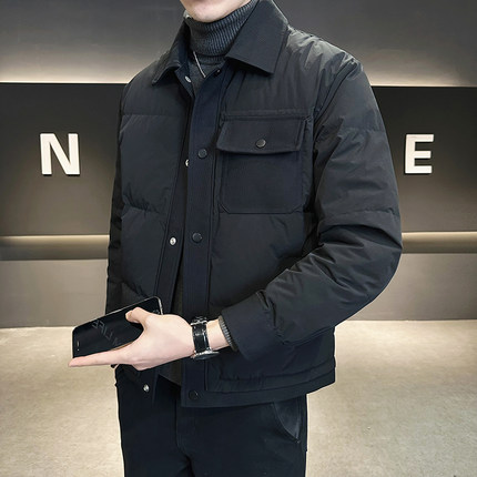 轻薄羽绒服男冬季新款2025潮流90绒防寒服修身短款翻领保暖外套男