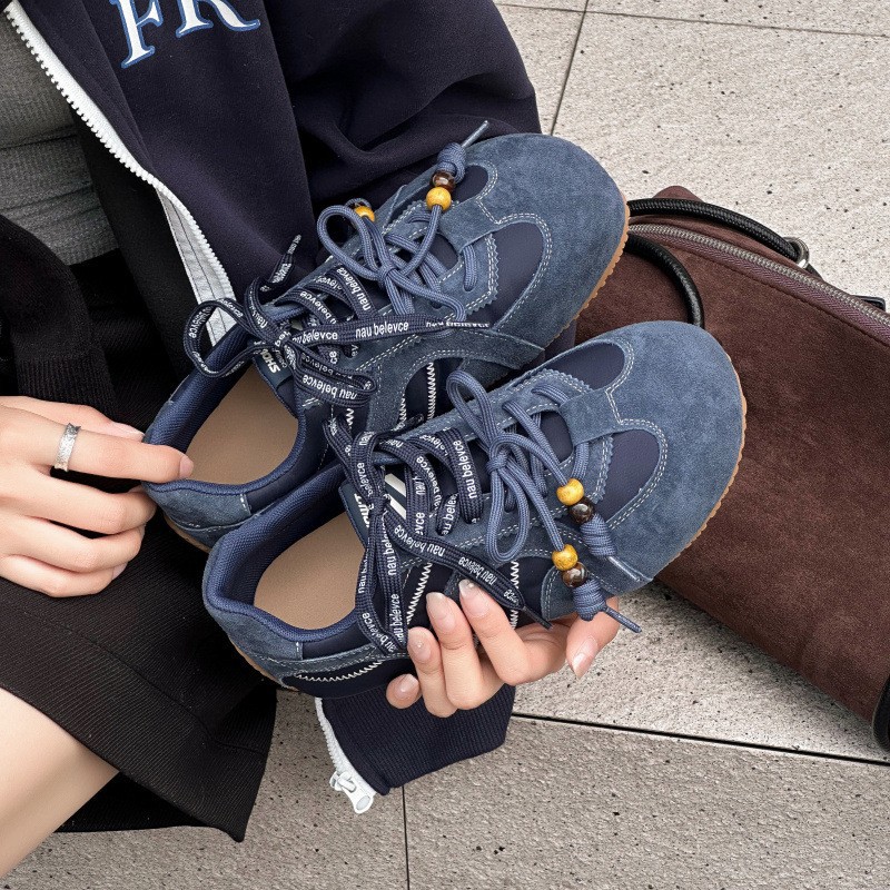 真皮德训鞋女2025新款板鞋复古平底面包鞋运动休闲鞋女韩版