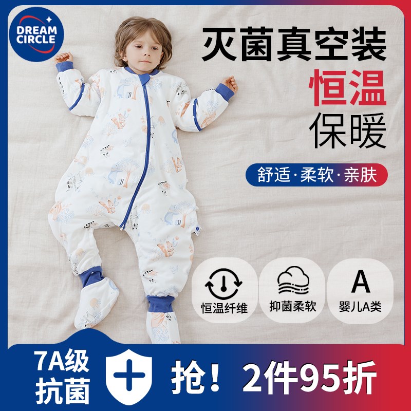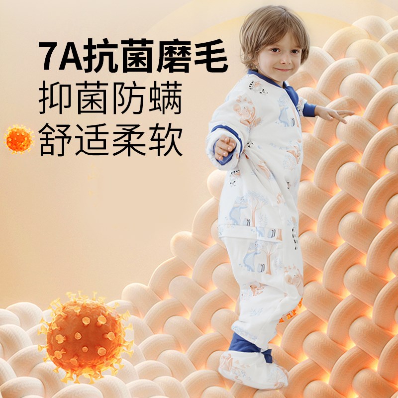 婴儿睡袋春秋款宝宝分腿秋冬加厚恒温7A抑菌中大童防踢被四季通用