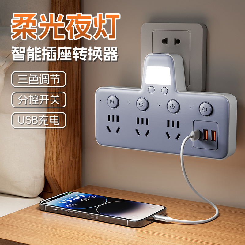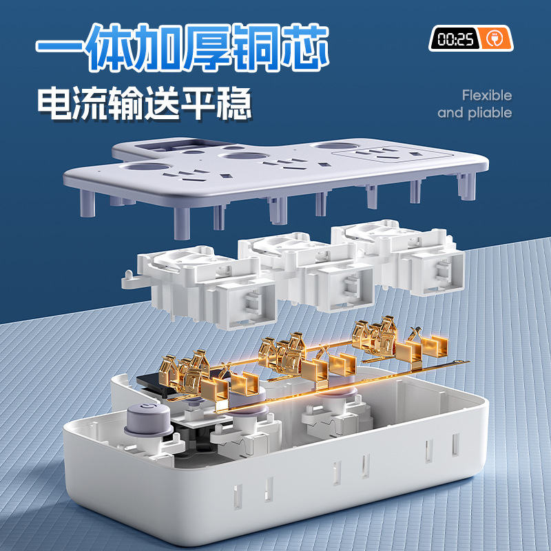 半米家用插座转换器多功能时钟插排宿舍插线板纯铜多孔USB排插板
