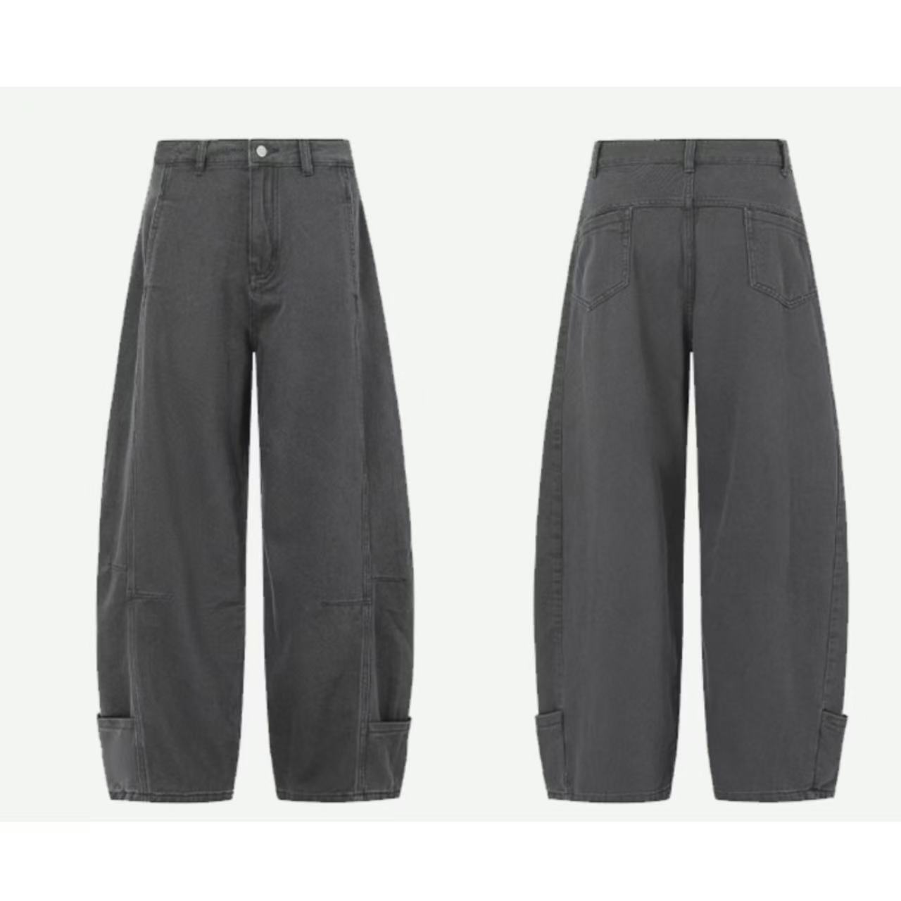 美式复古工装牛仔裤女新款宽松高腰显瘦灰色爵士舞裤白色弯刀裤子