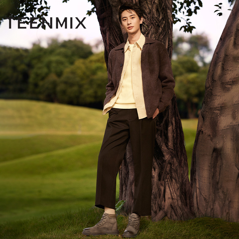 天美意冬新款商场同款工装靴百搭户外复古男皮短靴3YP01DD4