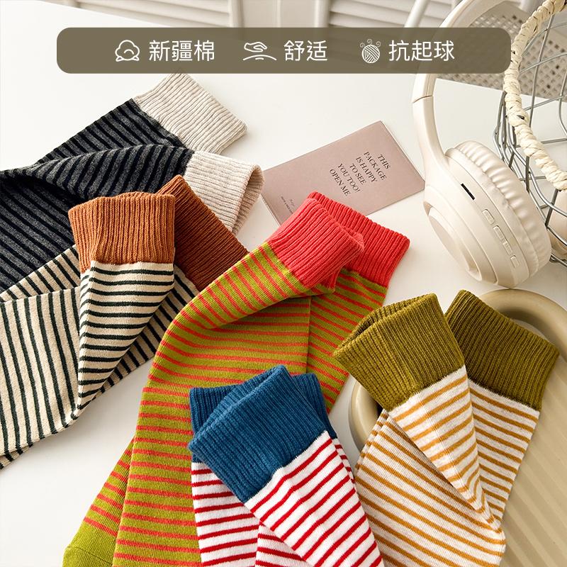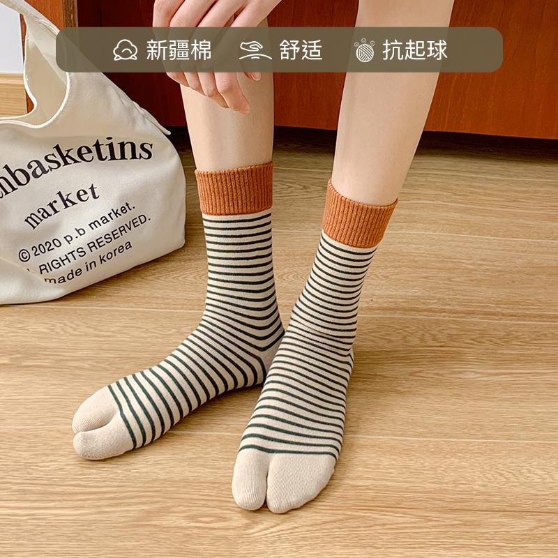 条纹二趾袜子女中筒袜ins潮女袜韩版细条拇指分趾袜女生撞色棉袜