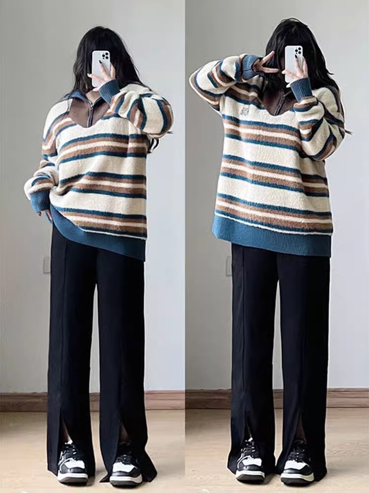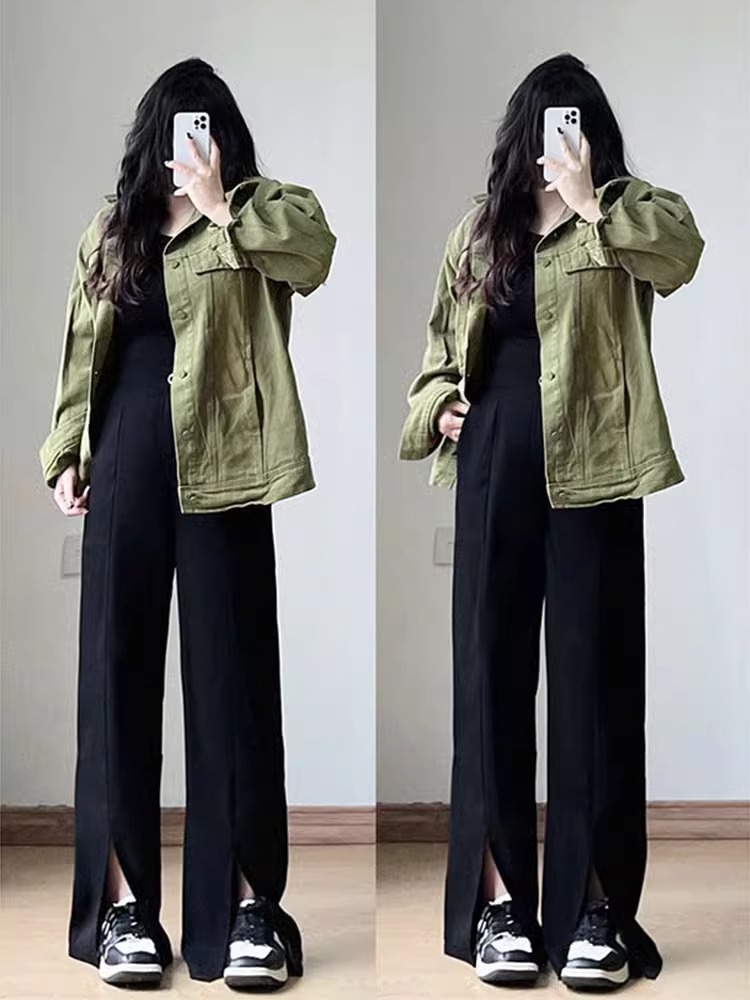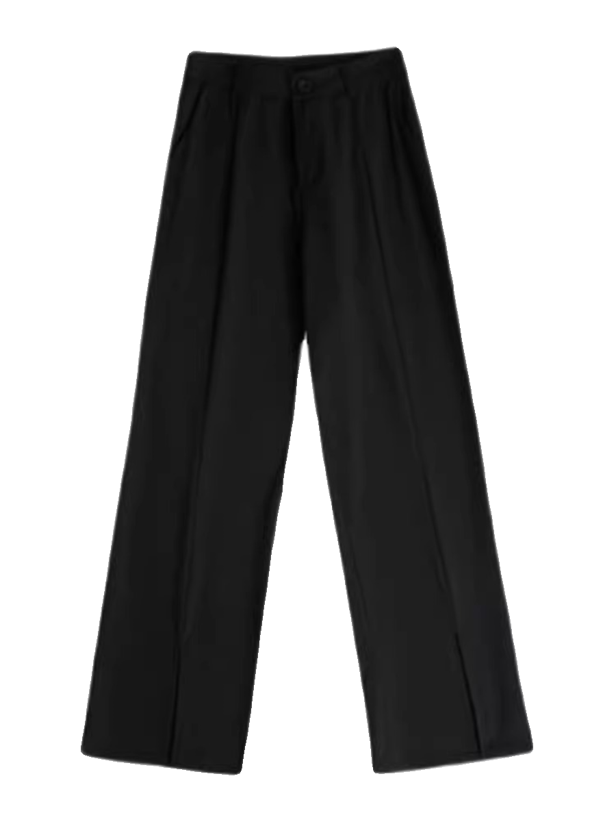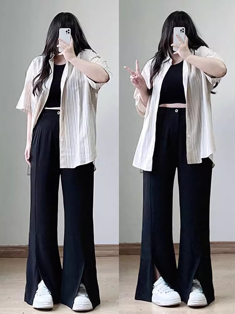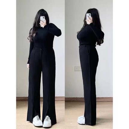 大码女装黑色西装裤女胖mm宽松长裤遮肉显瘦西裤百搭开叉裤子女裤