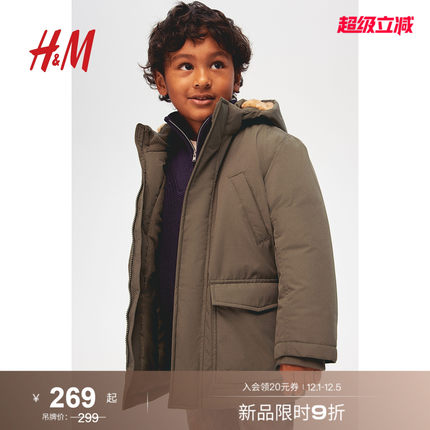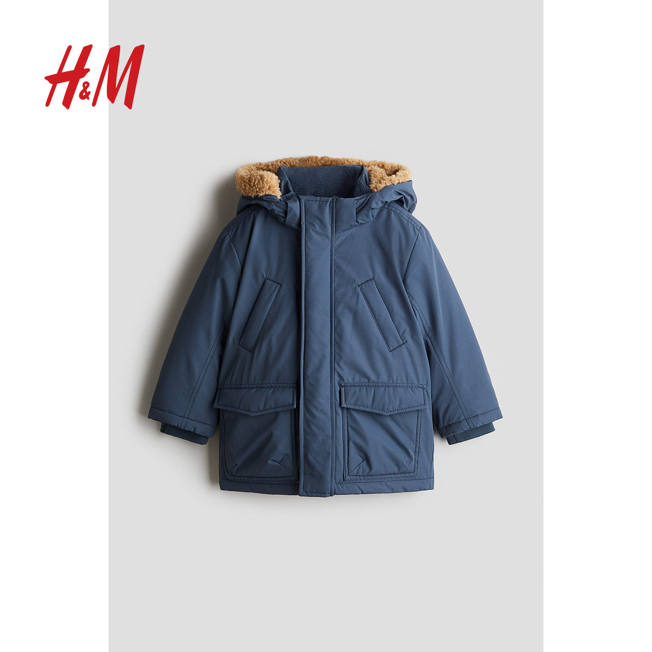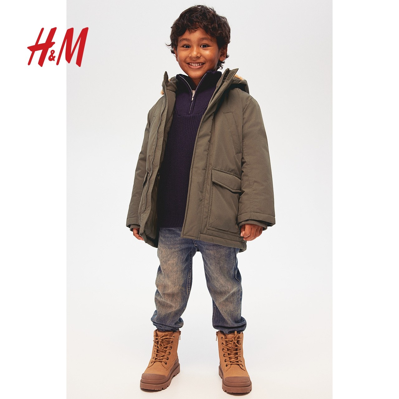 HM童装儿童男童外套秋季休闲舒适时尚疏水连帽派克大衣1239767