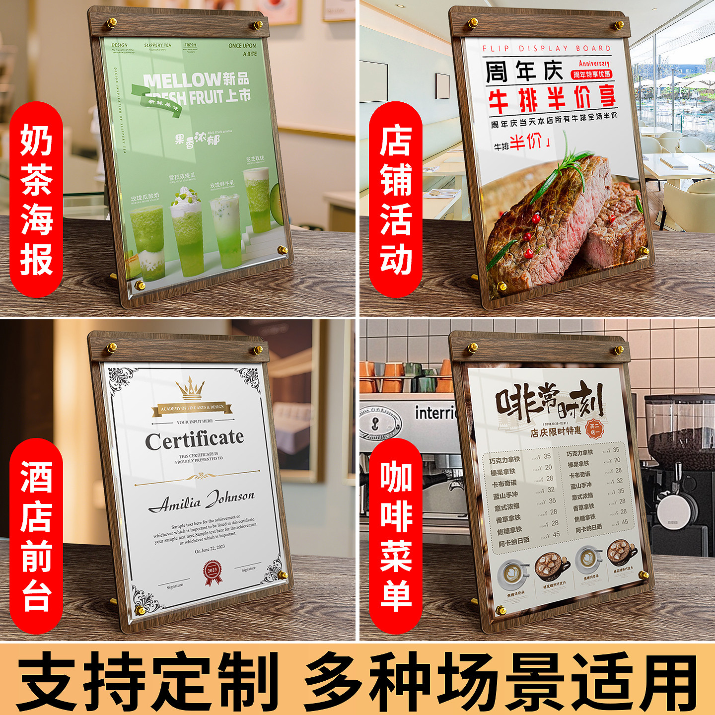 亚克力菜单价格展示牌A4立牌桌牌高档台卡台签架咖啡奶茶店餐桌点餐牌桌面摆台双面透明台牌定制价目表广告牌