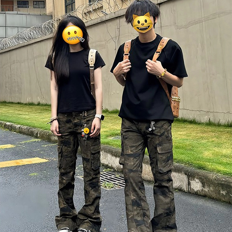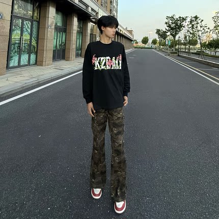 高个子加长迷彩牛仔裤男美式高街伐木工装裤子窄版修身直筒微喇裤
