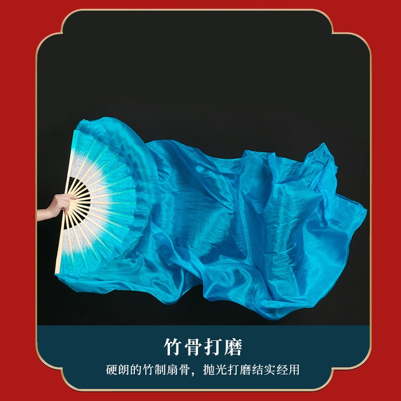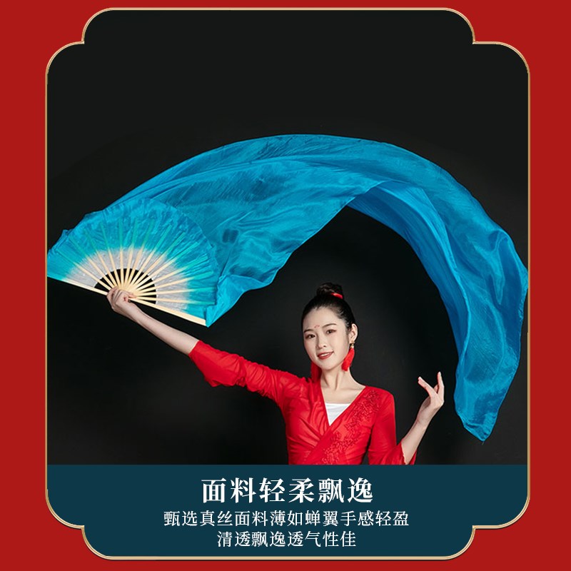 现货速发扇子舞蹈扇海的追寻加长湖蓝色长绸跳舞扇中国风古典舞开
