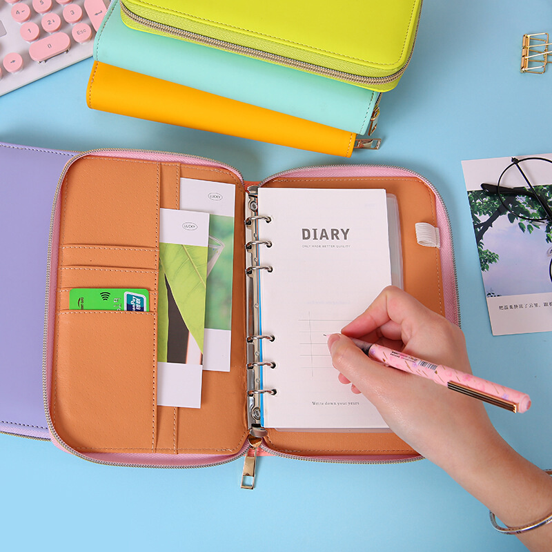 A6简约日记本办公皮质拉链包记事本本子批发加厚商务手帐笔记本