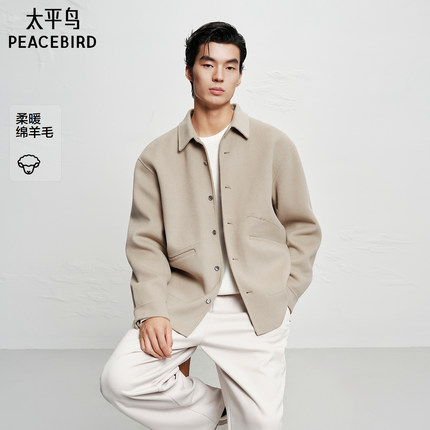 【商场同款】太平鸟男装 冬季新款羊毛翻领毛呢衬衫男B1CHF4265