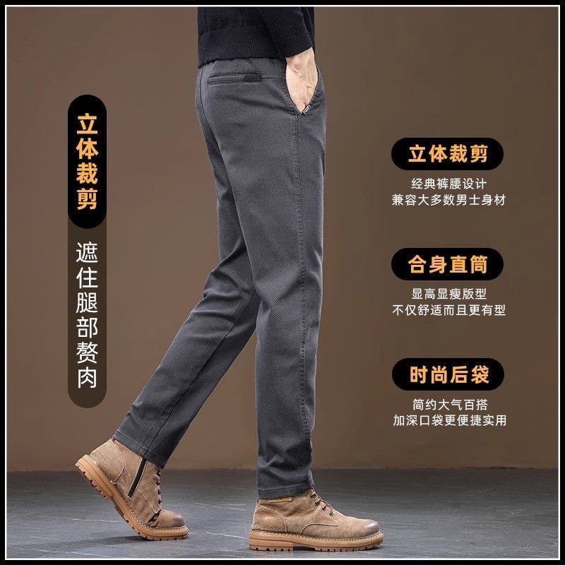 Yishion以纯官方时尚正品休闲裤男士弹力修身直筒长裤2025新款冬