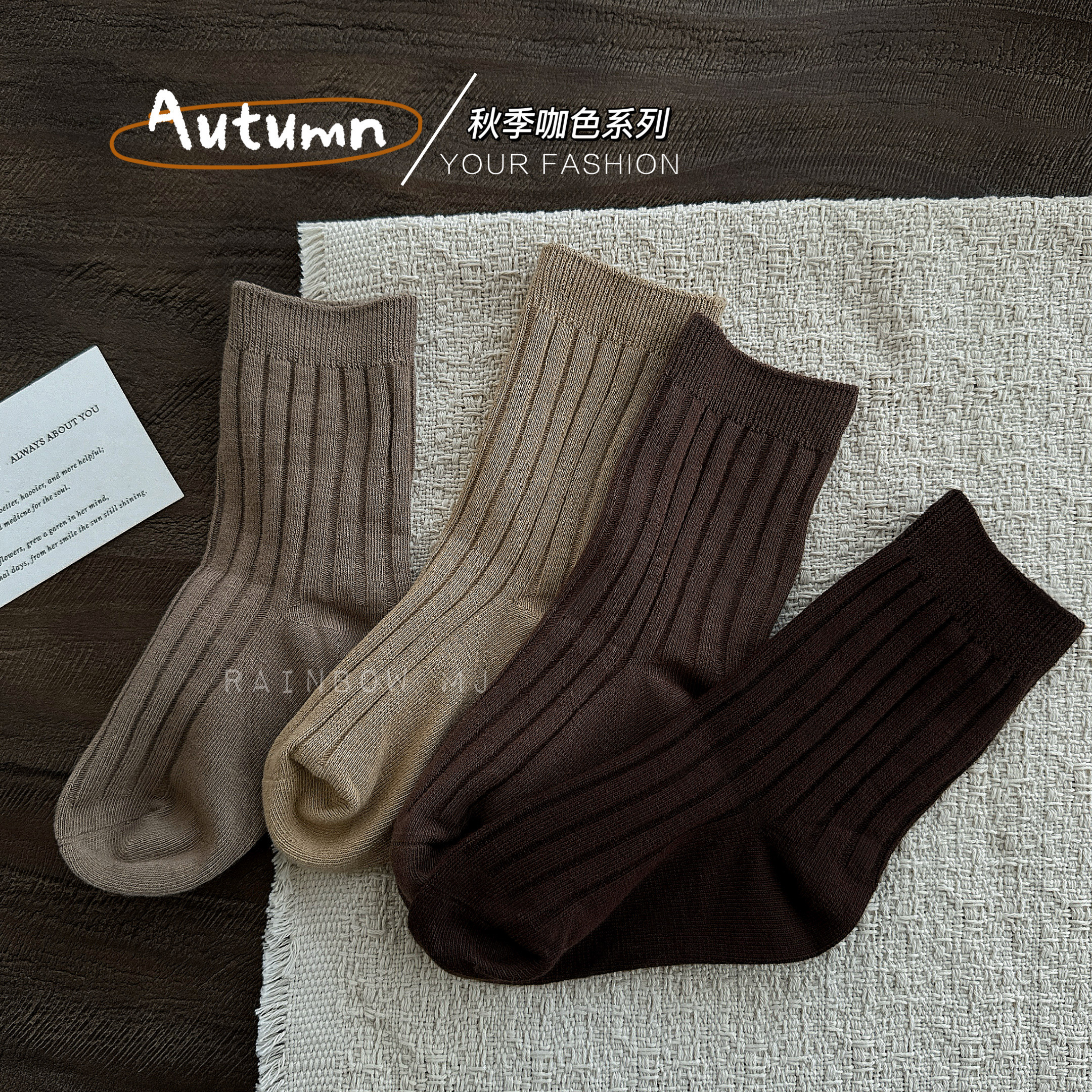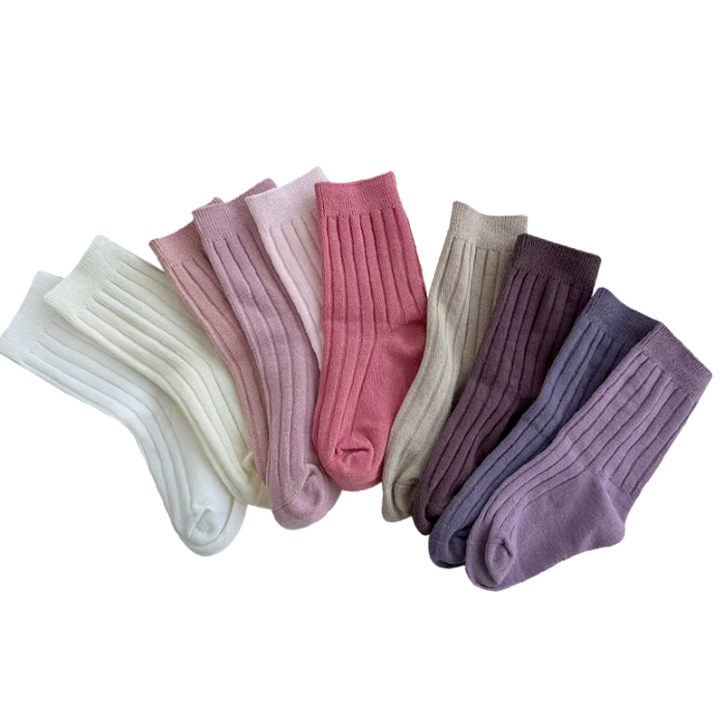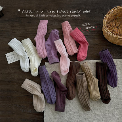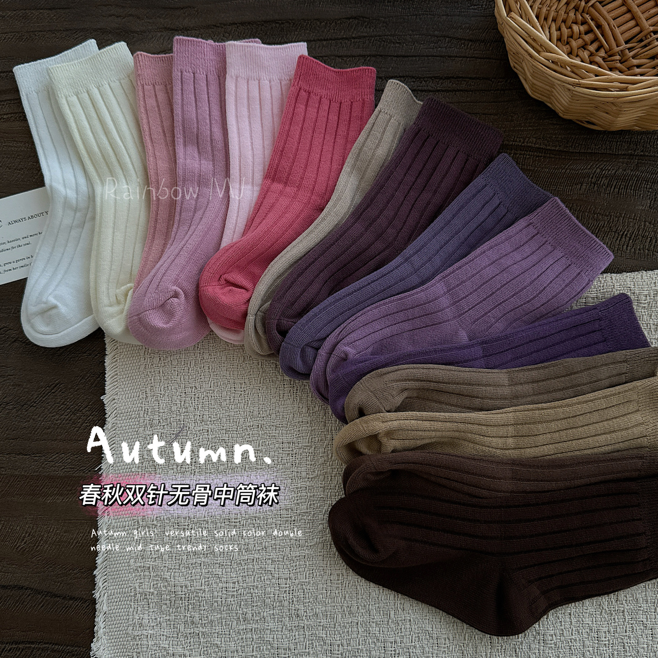 儿童袜子春秋季纯棉韩版女童糖果色中筒袜男童纯色复古百搭潮袜秋