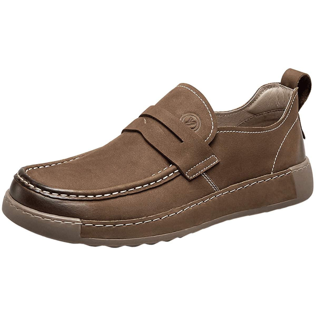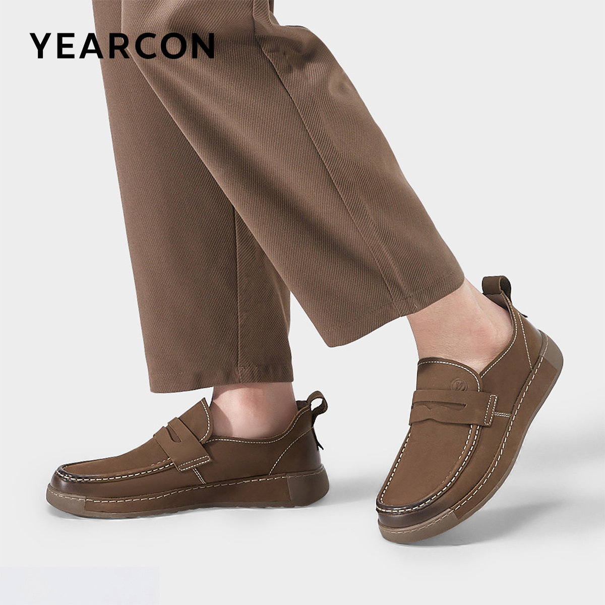 意尔康皮鞋男秋季套脚头层牛皮休闲鞋商务时尚一脚蹬复古乐福鞋男