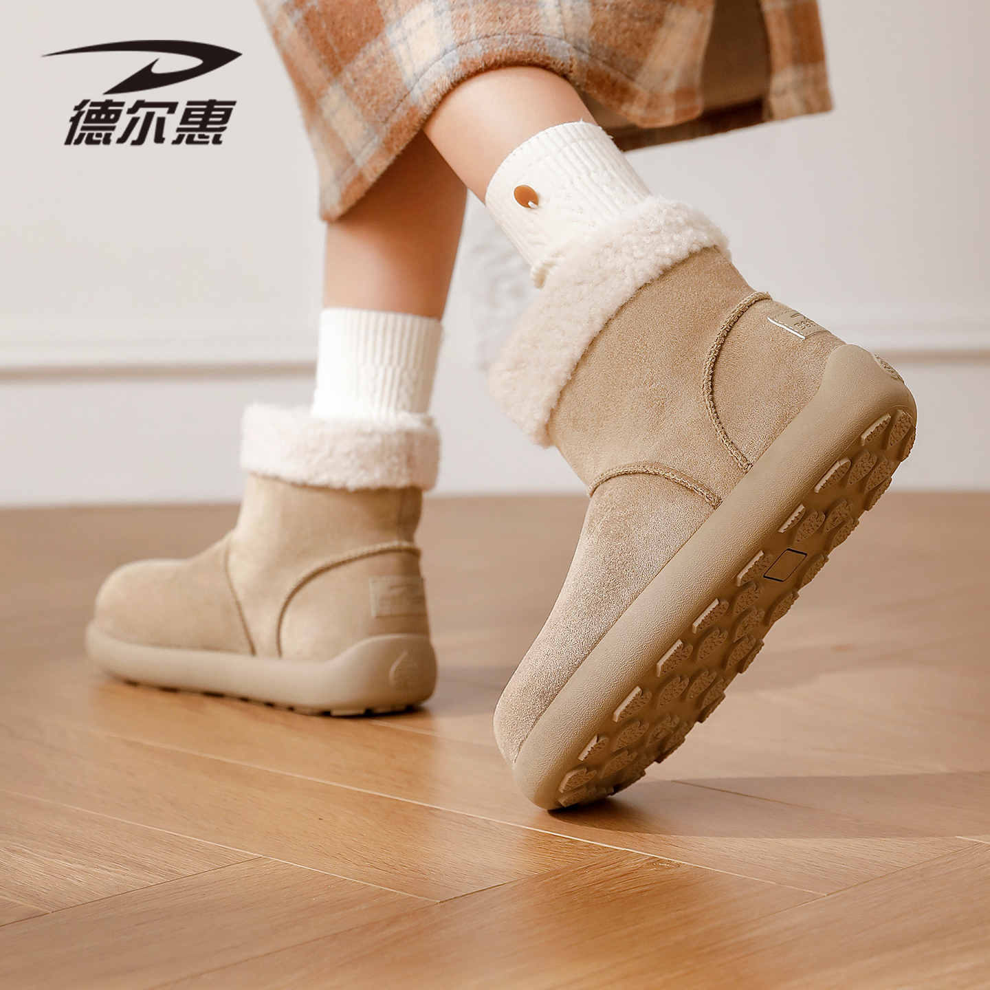 德尔惠厚底雪地靴女款冬季2025新款加绒复古保暖休闲棉鞋毛毛鞋子