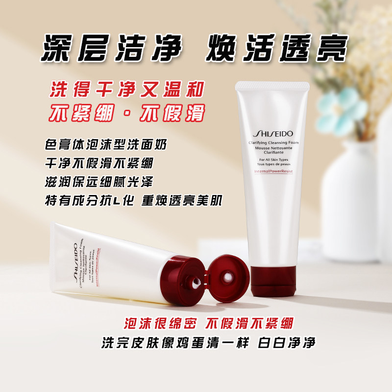 资生堂肌活焕采洁面膏50/125ml红腰子洗面奶温和敏感肌不紧绷