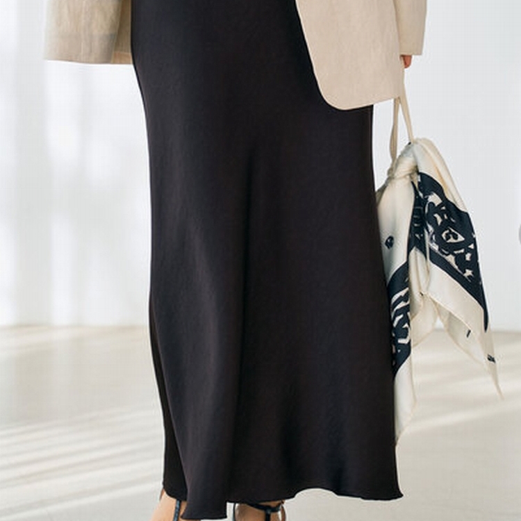 W25004春秋季女装时尚长款高腰纯色缎面质感半身裙包臀色丁长裙