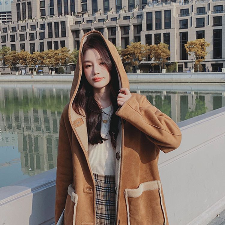 双面穿连帽外套少女冬季2025新款初中高中学生羊羔毛加绒加厚棉服
