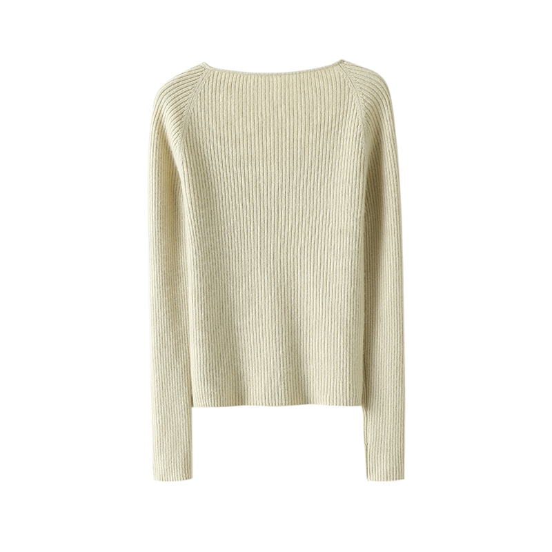 启超大大方方~法式优雅纯山羊绒衫方领针织衫女毛衣修身打底衫