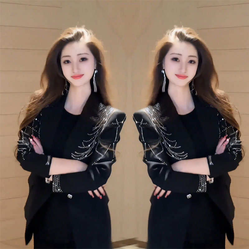 时尚镶钻西装外套包臀连衣裙女