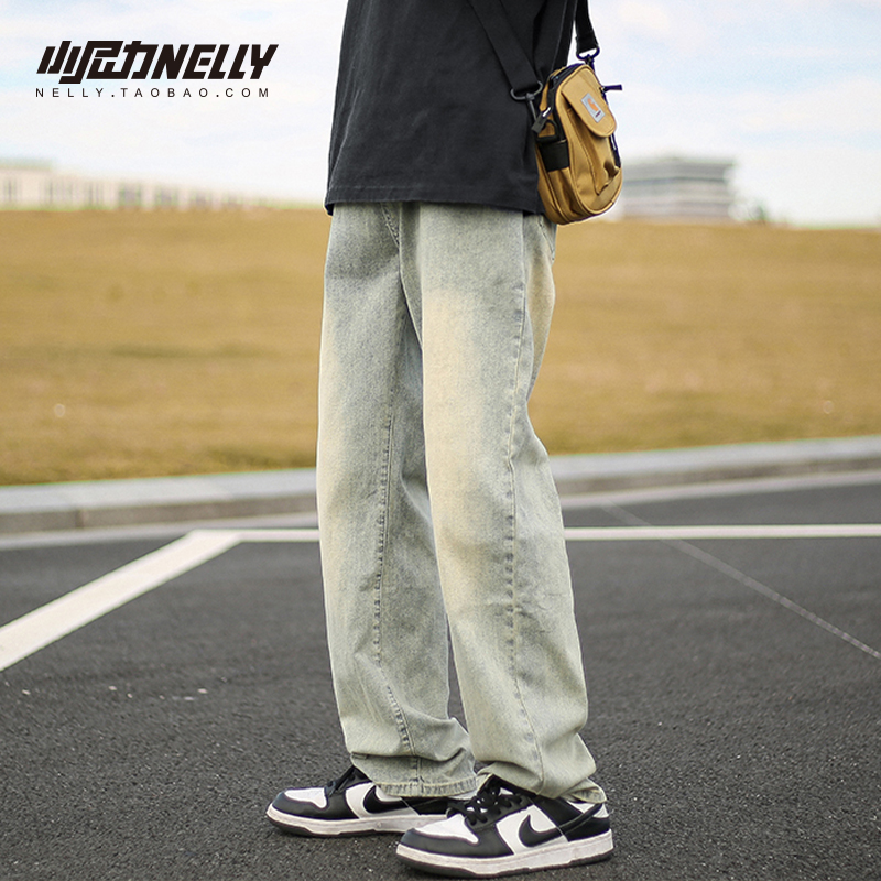 复古水洗直筒牛仔裤男春季美式潮牌宽松阔腿长裤男生休闲裤子男款