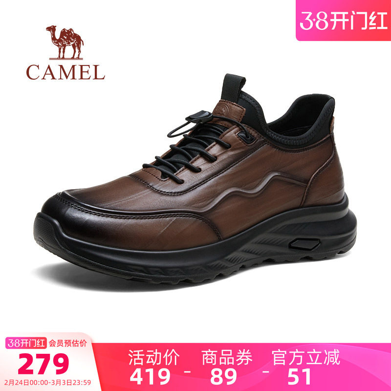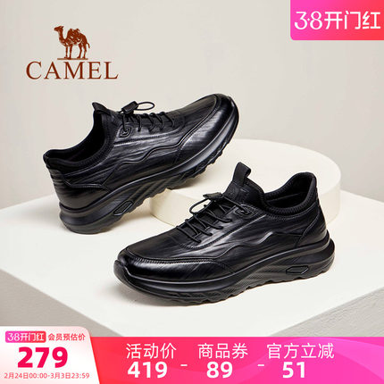 骆驼厚底真皮防滑运动皮鞋男鞋