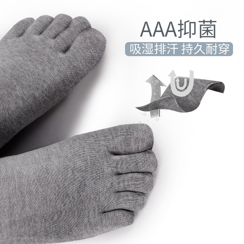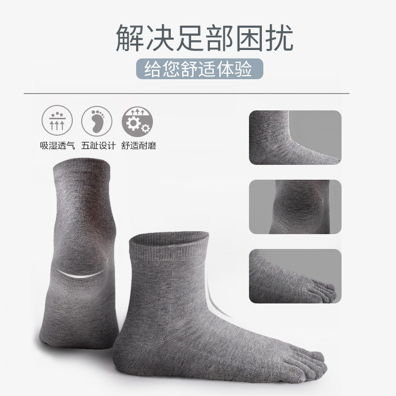 博雅五指男袜男士中筒纯棉秋冬中厚分趾抗菌防臭透气男生全棉袜子