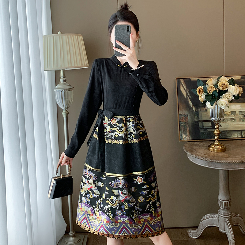 新中式国风改良版马面裙2024秋装新款复古长袖气质连衣裙早秋女装