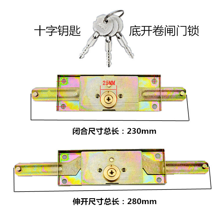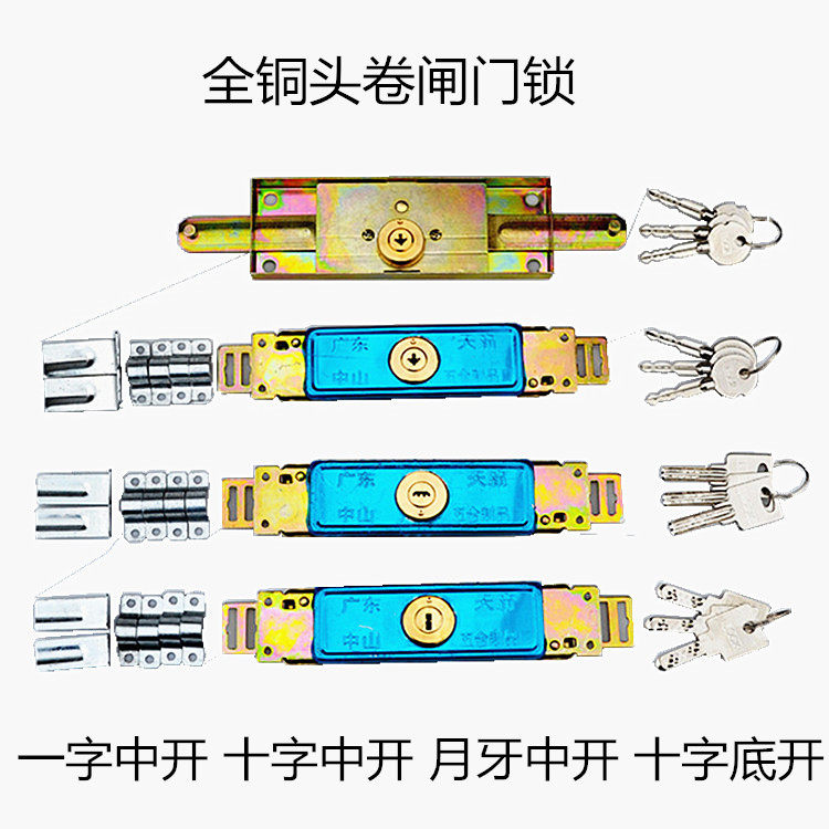 卷闸门锁卷帘门锁 铜芯十字 一字 月牙全铜头 中开 底开 卷闸门锁