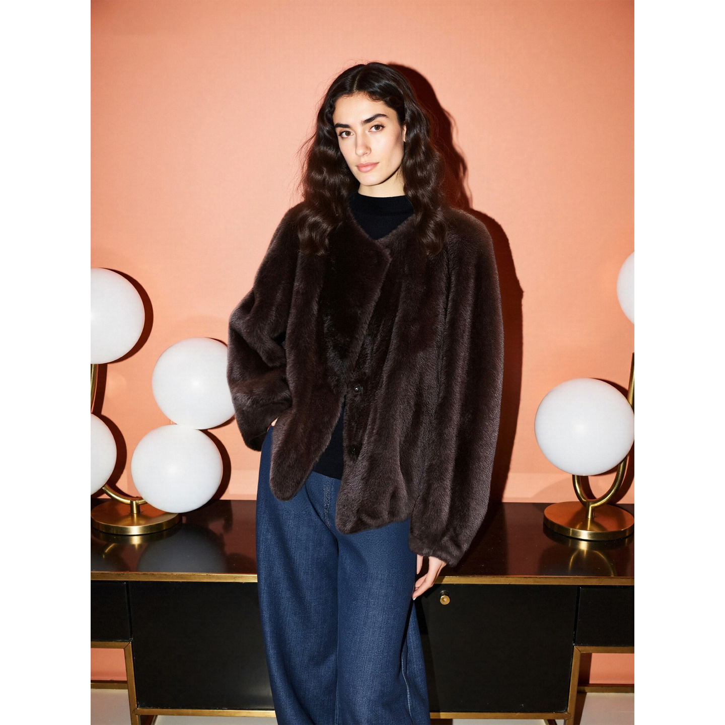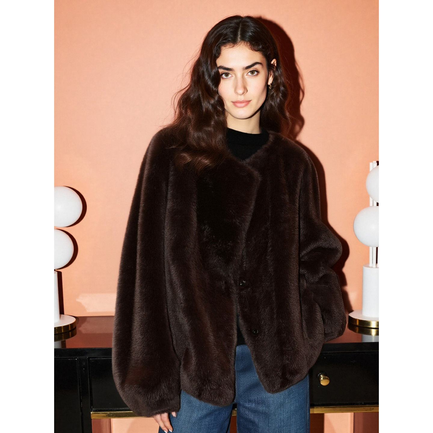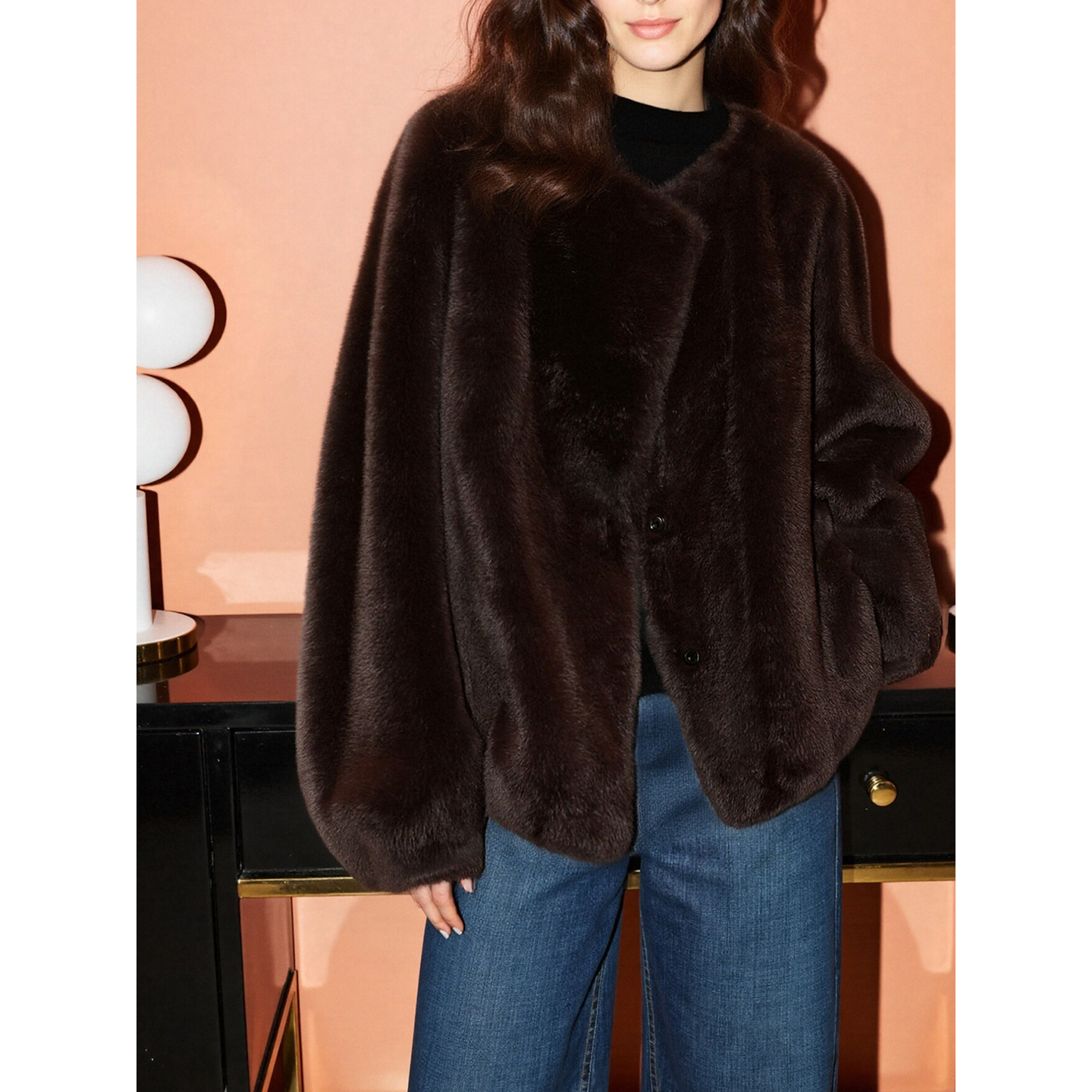 Basic House/百家好美拉德咖色环保皮草女冬季加厚保暖毛茸茸外套