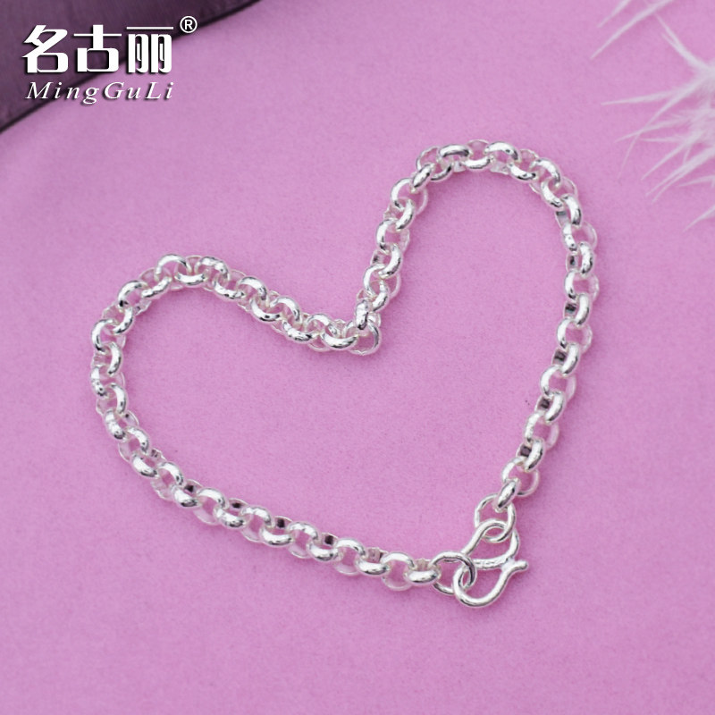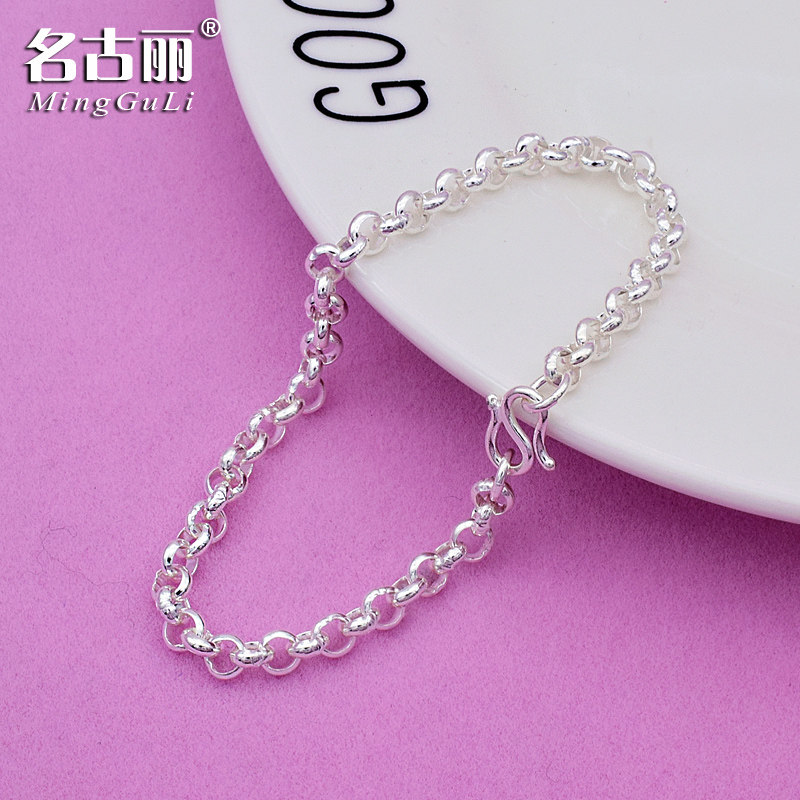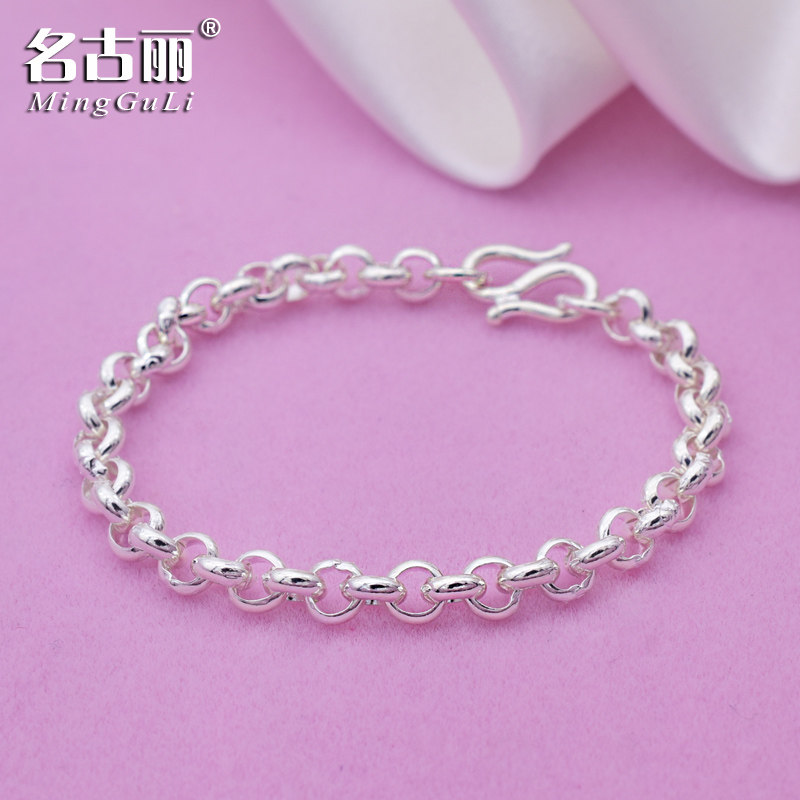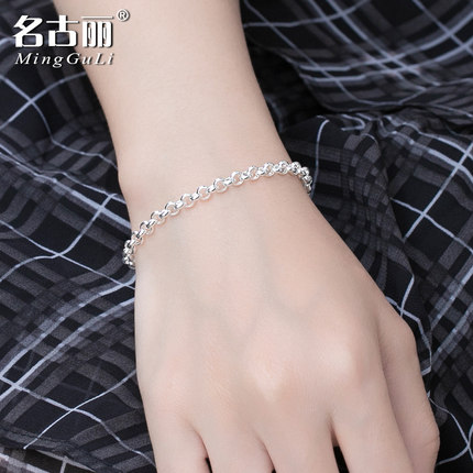 银饰品女纯银简约手链o字
