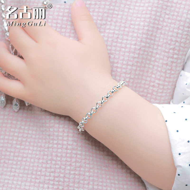 纯银手链女孩子O字链男童足银可定制银饰女宝宝儿童小孩女童成人