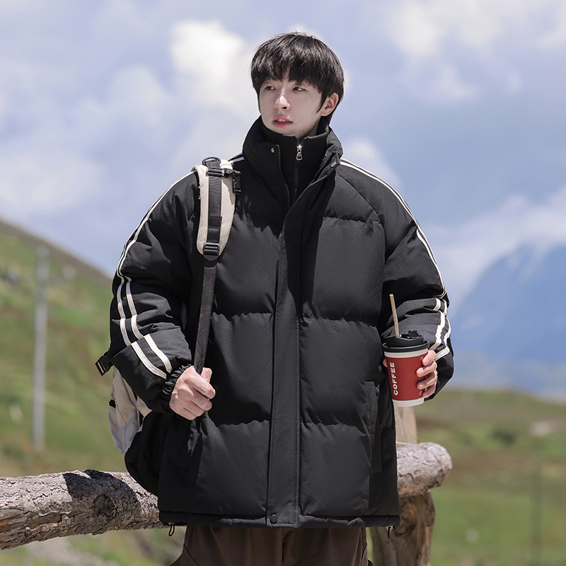 秋冬上新青少年半高领假两件多巴胺棉衣加厚超保暖男生防寒棉服