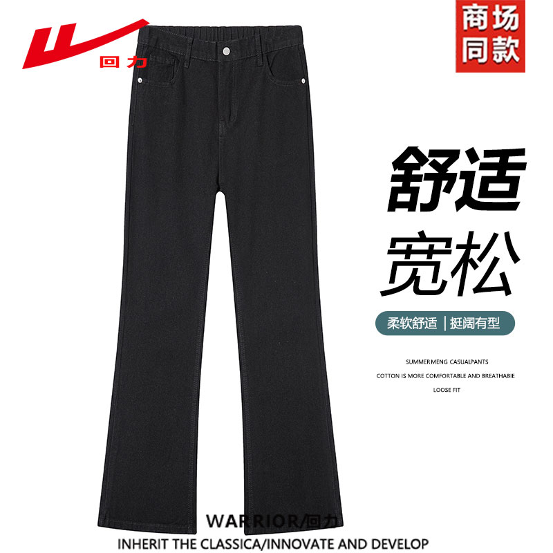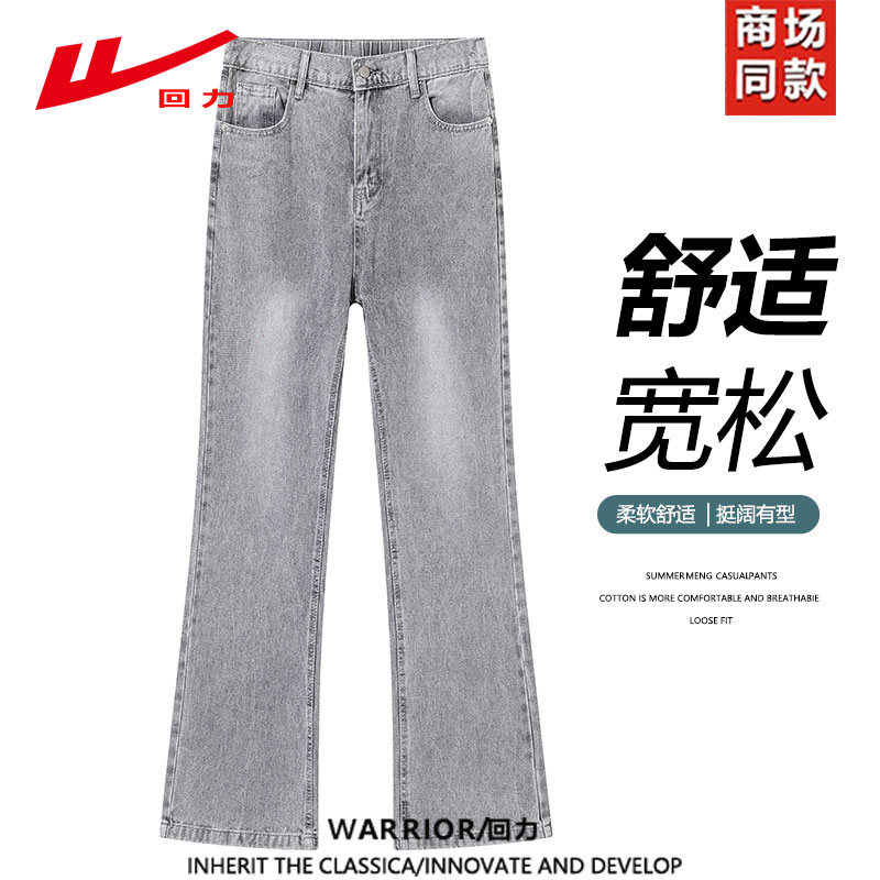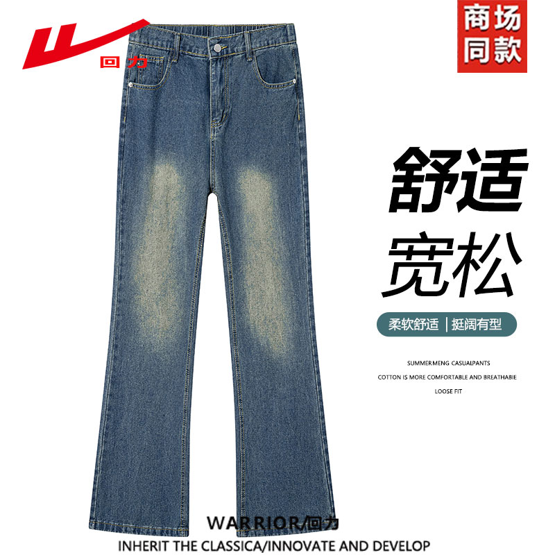 回力微喇牛仔裤男女款春秋季新款复古水洗拖地裤宽松直筒百搭长裤