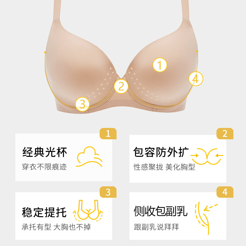 桑扶兰洞洞杯内衣女大胸显小无痕光面薄款亲肤透气聚拢防下垂文胸