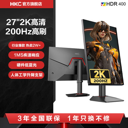 HKC显示器27英寸2K200HZ电竞IG27Q电脑SG27QC曲面4K屏幕G27H2Pro