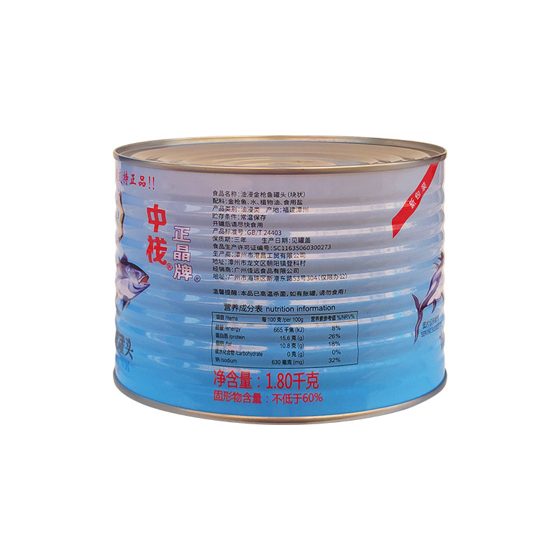 中栈 正晶牌 油浸金枪鱼罐头1.8kg*6罐 一箱寿司料理披萨三明治夹