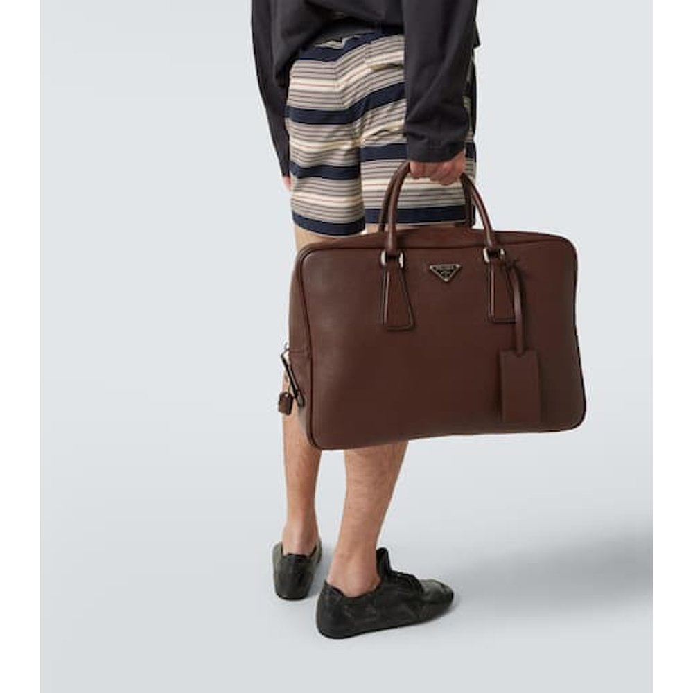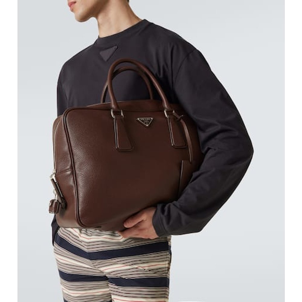 潮奢 Prada 普拉达 男士 皮革公文包 brown棕色 舒适时尚