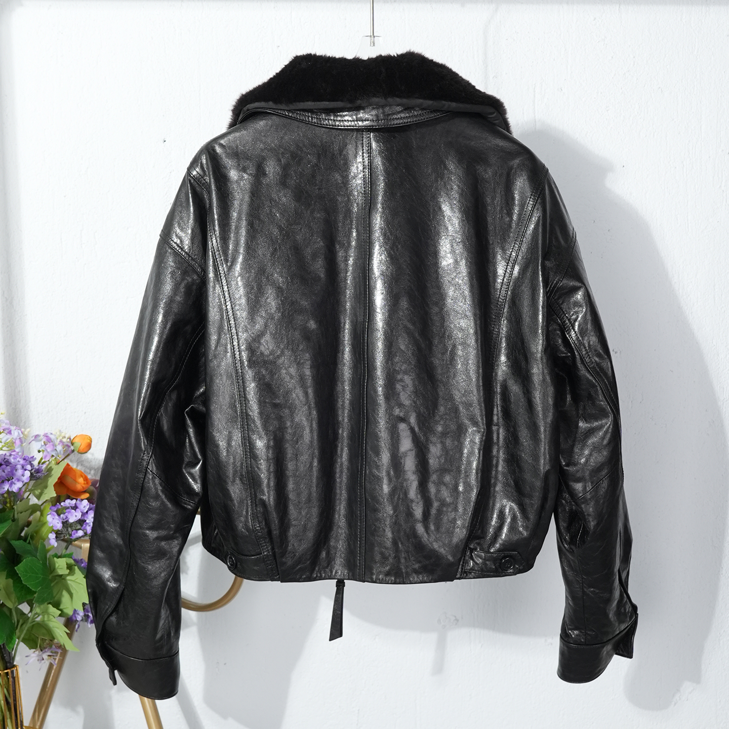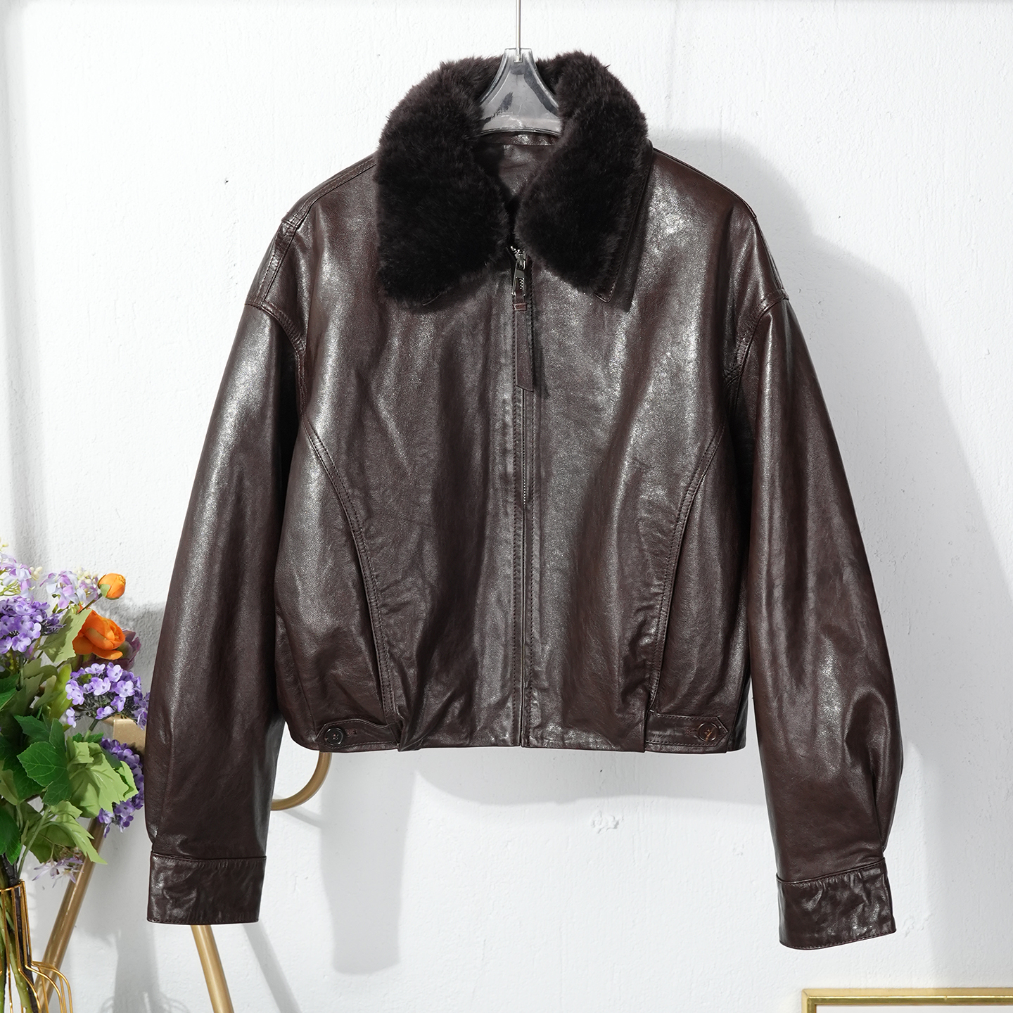 可拆卸羊羔毛毛领2025冬冷翠油蜡绵羊皮真皮羽绒服女白鹅绒短外套