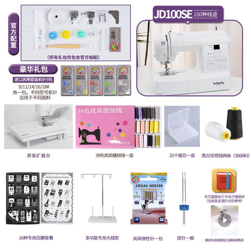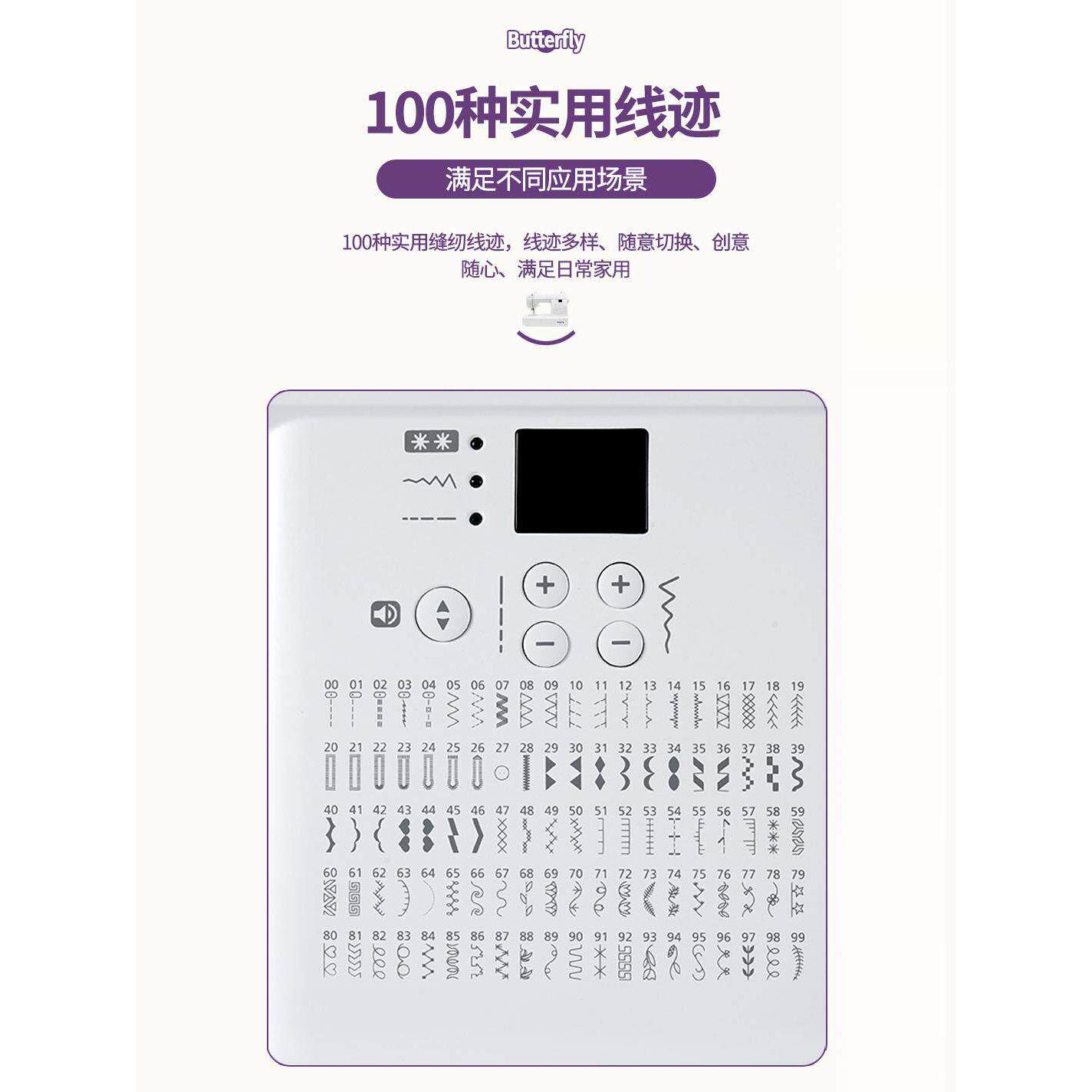 蝴蝶牌缝纫机家用100Se脚踏电动数码多功能台式缝纫机厚食薄锁