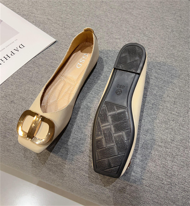 韩版舒适软底豆豆鞋女2024年春季新款金属扣装饰浅口方头平底单鞋