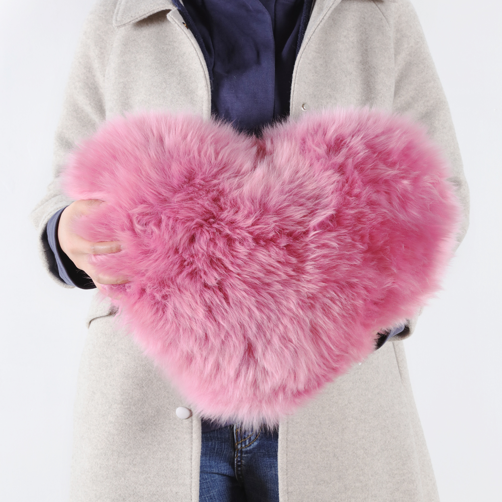 纯羊毛心形抱枕爱心毛绒含芯羊毛沙发靠垫少女可爱粉色公主风靠枕
