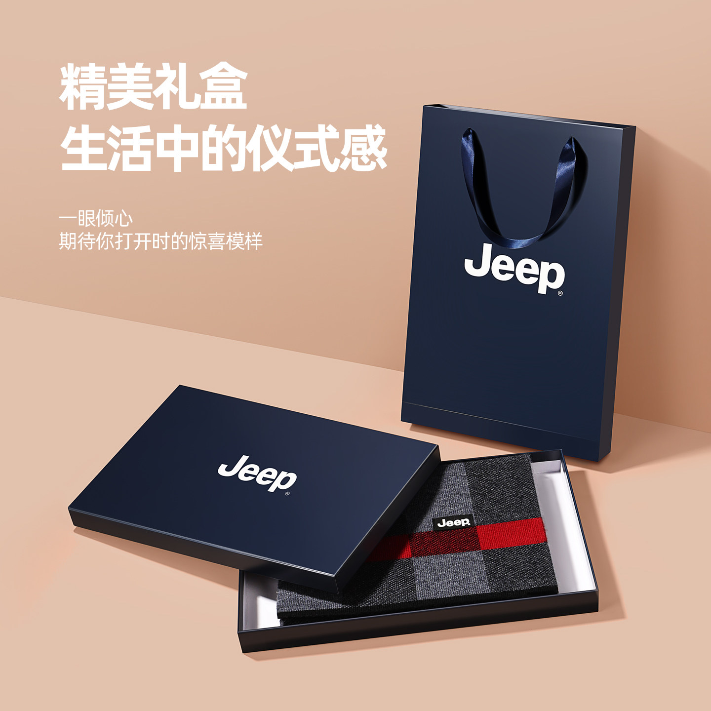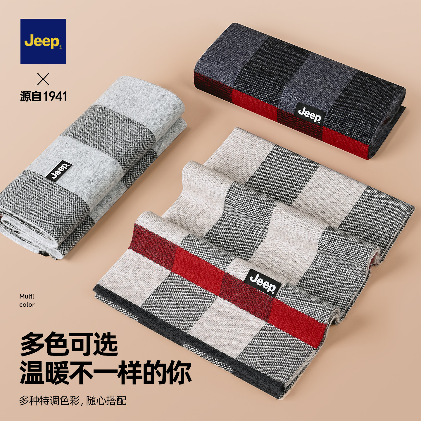 jeep吉普围巾男士100%羊毛时尚青年中年户外防寒防风冬季保暖围脖